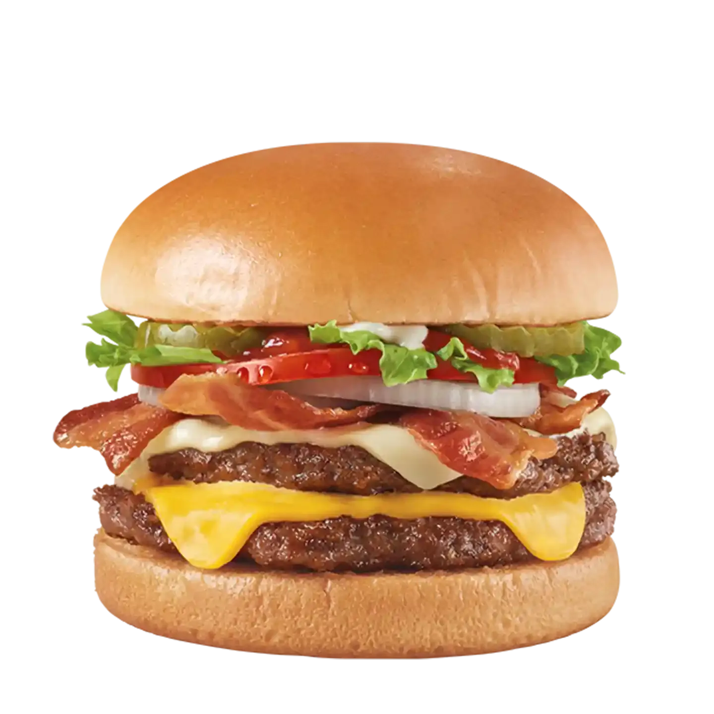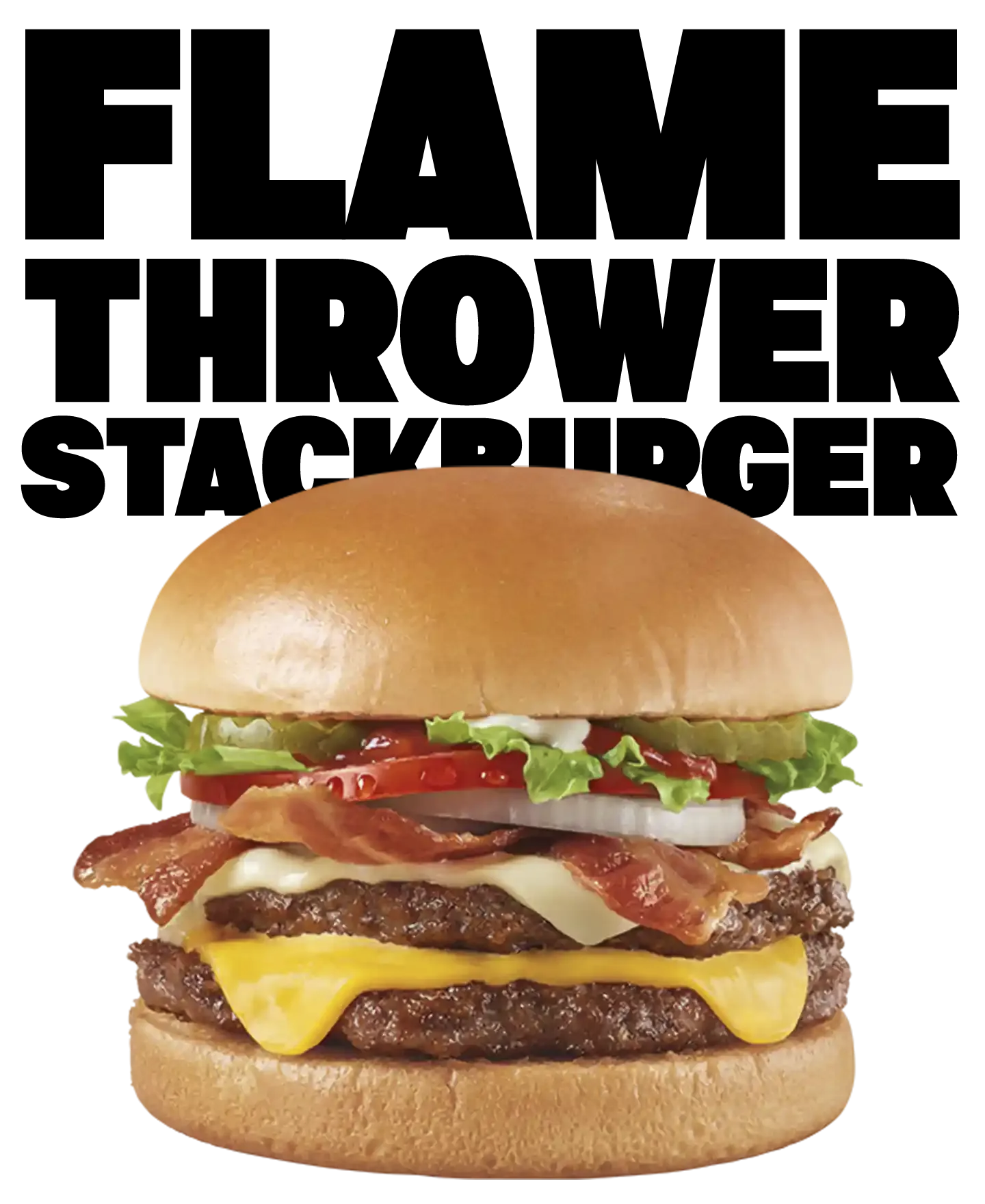Stacked with 100% seasoned real beef patties and layers of bold.